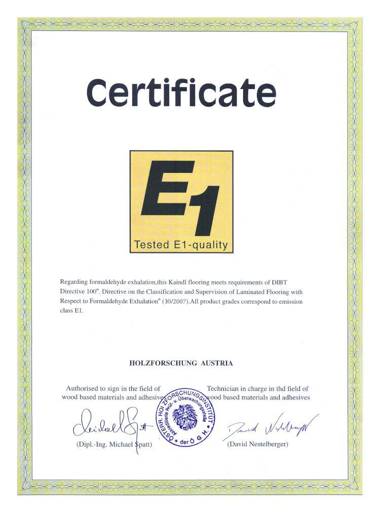 歐洲國家根據(jù)人造板中游離甲醛含量來劃分等級,目前歐洲甲醛限量等級被分成E1、E2、E3,它的標準具體體現(xiàn)在數(shù)值上,必美代理的歐洲原裝進口地板獲得的E1級認證表明產(chǎn)品的甲醛釋放量非常低,是地板高度環(huán)保的證明。