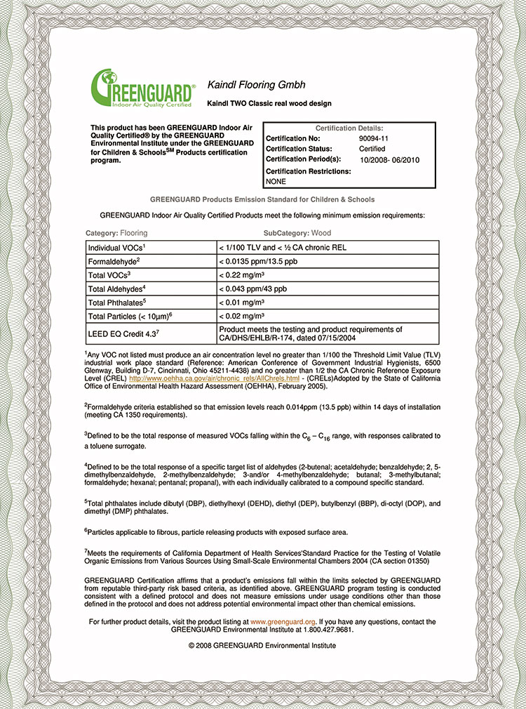GREENGUARD室內(nèi)空氣質(zhì)量認證是針對室內(nèi)材料、家具以及構(gòu)造系統(tǒng)的低揮發(fā)產(chǎn)品的認證項目。檢測方法依據(jù)GREENGUARD的“動態(tài)環(huán)境控制艙內(nèi)檢測化學(xué)揮發(fā)方法”的檢測方法,所有產(chǎn)品將在動態(tài)環(huán)境控制艙內(nèi)被檢測。通過對75,000多種不同行業(yè)的產(chǎn)品進行化學(xué)物質(zhì)排放檢測研究,能夠確認釋放到空氣中的12,000多種揮發(fā)性有機化合物,從而保證室內(nèi)空氣質(zhì)量。獲得GREENGUARD認證的產(chǎn)品,也證明通過了世界上權(quán)威的室內(nèi)空氣質(zhì)量認證測試。