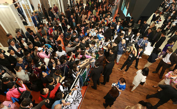 現場除了球迷粉絲,最常見的就是各種長槍短炮。每年三月,逾百家海內外媒體都高度關注著上海國際地材展,此次必美國際同樣吸引了數十家主流媒體報道團強勢聚焦現場,CCTV、網易家居、鳳凰網、中國木地板網等知名媒體360度全面報道了此次活動。