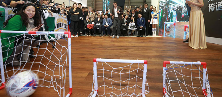 在互動環節,皮耶羅和施拉格還一起進行罰球示范,并邀請球迷進行最佳點球手游戲,獲勝球迷現場獲得皮耶羅簽名足球和球衣,并留下珍貴合影。