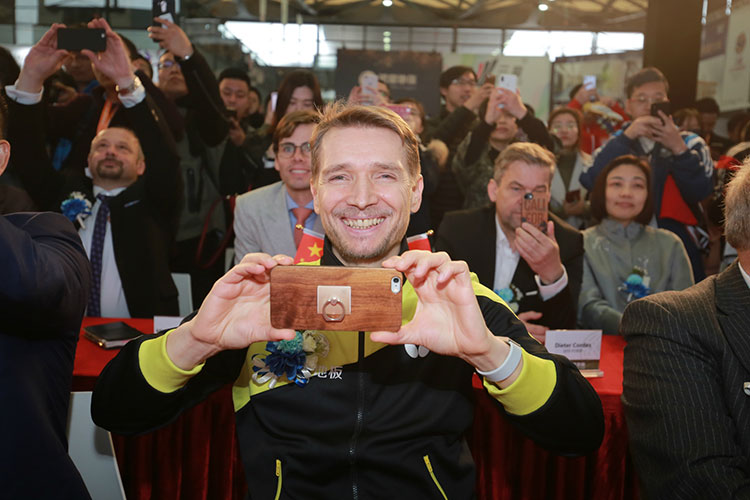 必美地板2018年的品牌形象代言人、乒乓球世界冠軍維爾納.施拉格在一片掌聲之海中來到了舞臺中央,他表示再次來到中國非常高興,能和必美地板合作宣傳歐洲環保家居理念是一件十分開心的事情,更幽默地表示這使得他歐洲環保形象大使的頭銜變得更加名副其實。現場也有許多施拉格的球迷慕名而來,想一睹冠軍風采。新聞發布會的尾聲,世界足球巨星終于在球迷的呼喊聲和尖叫聲中帥氣現身,全場觀眾紛紛起來拍照,繼展館一面之緣之后,球迷們越發激動,歡呼聲不斷,引發全場關注。巴拉克比想象中更加健談,見到中國球迷的熱情程度也表示十分感動。發布會最后,孫總和巴拉克還雙雙按下金手印,互相交換禮物來紀念彼此的第一次跨界合作,巴拉克最后還和全場球迷玩起了現在熱門的自拍大合影,將和球迷的感動瞬間永遠定格。