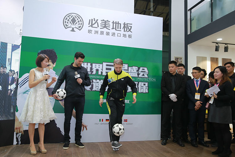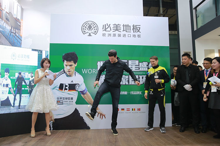 2018年3月20日,第20屆中國國際地面材料及鋪裝技術展覽會在寒雨交加中如約開展,一千多家品牌匯聚一方爭高下。作為陪伴上海地材展近10年的老牌參展商,必美地板今年盛邀兩大國際巨星:原德國鐵血隊長邁克爾.巴拉克和乒乓球世界冠軍維爾納.施拉格激情助陣,更有旗下品牌的歐洲廠商代表前來赴會,超豪華的陣容配置讓必美地板瞬間成為本屆上海地材展的奪目焦點,吸引了央視CCTV、中國新聞社、網易、鳳凰、搜狐、房天下等多家主流媒體的強勢聚焦,全方位多渠道地報道了此次盛會。