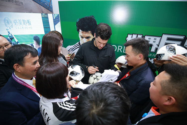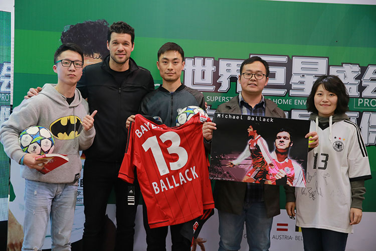 最令球迷開心的當數主辦方設置的一系列游戲了,無論是和施拉格PK的顛球還是巴拉克進球模仿秀都玩得有聲有色,巴拉克甚至還現場欽點了幾位幸運球迷進行近距離互動,讓大家大呼過癮。最令人羨慕的就是之前參加必美地板網上互動脫穎而出的幾個球迷了,他們可是到現場來領獎的哦,巴拉克親自頒發自己簽名的足球和球衣,還得到了合影留念的機會,簡直是人品大爆發!這場巨星盛會中,網易和中新社等媒體進行了全程網絡直播,吸引了網上大批粉絲的圍觀和支持。很多球迷為了參加這次難得的活動,專程從各地飛過來,活動一結束就要趕飛機回去,這份真情令人感動。