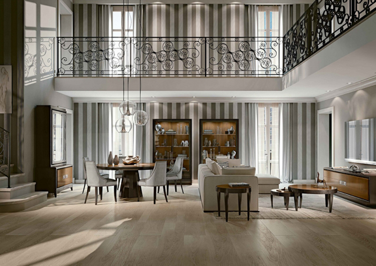 黑川雅之曾經(jīng)表示,在日本的觀念里,地面不是空間的一部分,它就是一個(gè)家具。隨著審美意識(shí)的不斷提高,軟裝、硬裝、地面材料、家具之間的界限不斷模糊,甚至融合,很多地面裝飾材料,例如地板、地毯等,不僅僅是單一的材料,更是兼具實(shí)用性與藝術(shù)性的作品,它們所運(yùn)用的工藝比很多家具都要考究。就像必美代理的意大利菲列德羅地板,早期以制作上流社會(huì)的家具起家,如今一直沿用家具制造工藝用來(lái)生產(chǎn)地板,在地板中加入黃金、陶瓷、黃銅等不同的材質(zhì),以滿(mǎn)足不同消費(fèi)群體的需求,出品更像是具有畫(huà)龍點(diǎn)睛作用的藝術(shù)品,將整個(gè)空間的格調(diào)提升到一個(gè)新的層次。