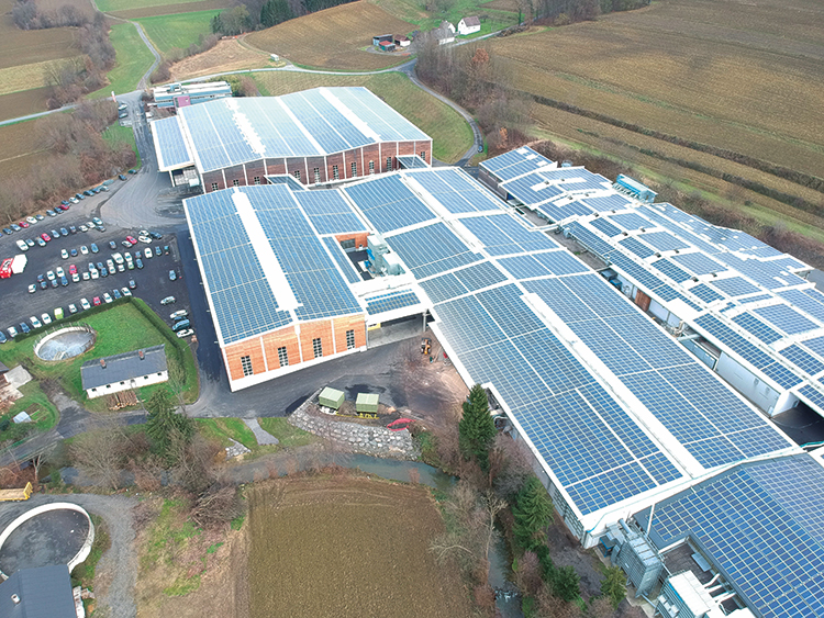從2018年11月開始,史迪萊克的光伏系統投入運營,屋頂面積約30000㎡,相當5個足球場的面積,約有17000塊太陽能電池板,是目前奧地利最大的光伏屋頂系統。該工廠的輸出功率為5000 KWp,該容量可為大約1200個普通家庭供電。其中一部分電力用于生產實木復合地板,其余部分則導入公共電網。借助新光伏系統能夠減少約400萬公斤的二氧化碳排放。此外,史迪萊克將建立充電站,希望打造一個“全電動”的運輸體系。