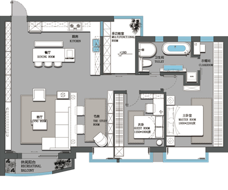 4.業(yè)主希望能有安靜又不被打擾的獨處空間,安靜下來的時候能彈彈鋼琴,享受這份美好的獨處 —— 多功能房。
