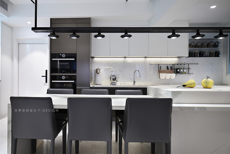 餐廳與廚房結(jié)合,開放式廚房,增加了廚房的空間感,并且不再是一個人在廚房忙忙碌碌的孤獨,更重要的是開放式廚房能夠讓一家人保持隨時溝通的狀態(tài)。