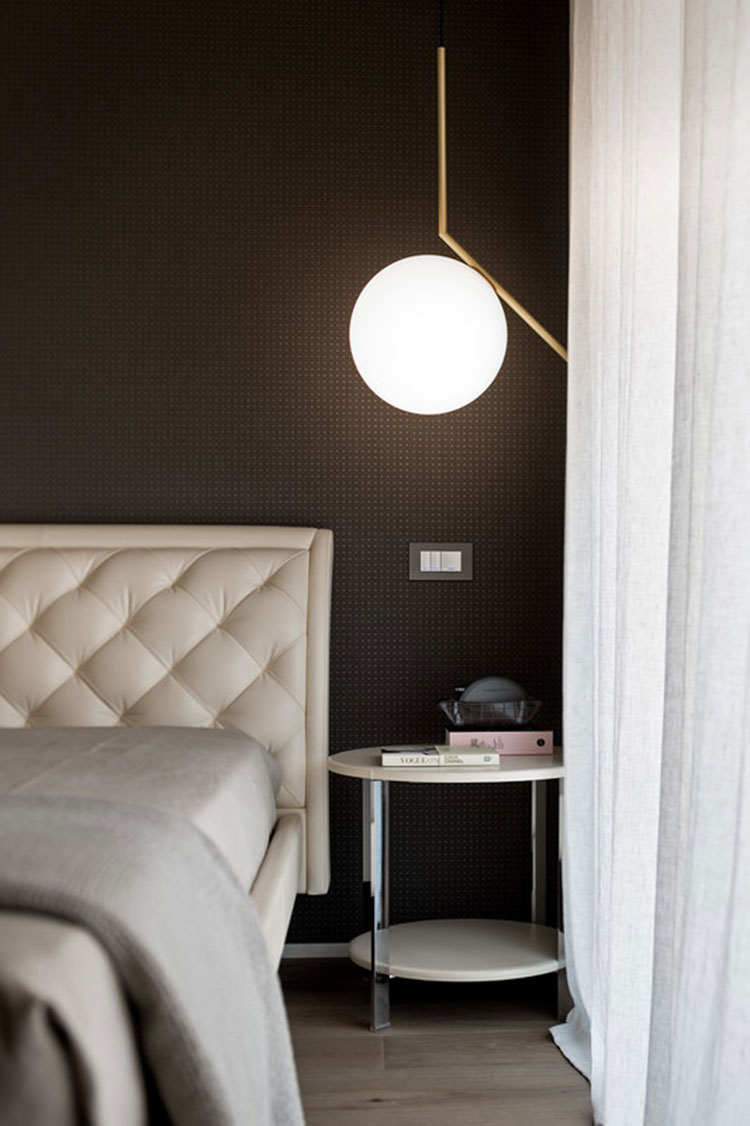 客廳如果采光充足,可以考慮放棄主燈,選擇其它燈具代替;如果采光不佳,應該選擇主燈+輔助燈來照明。燈飾以莊重、明亮的吊燈或吸頂燈為宜。餐廳的光源重點一般放在餐桌上方及餐邊柜,餐桌燈可以選擇距離桌面 65cm~70cm的暖色調吊燈,營造溫暖明亮的氛圍;餐桌附近墻上還可適當配置暖色壁燈,使進餐氣氛更熱烈。臥室作為睡覺的場所,躺臥時最好不要被光源直射,燈光也要柔和,除主燈外,筒燈、壁燈、臺燈、燈帶等也可以提供睡前照明。