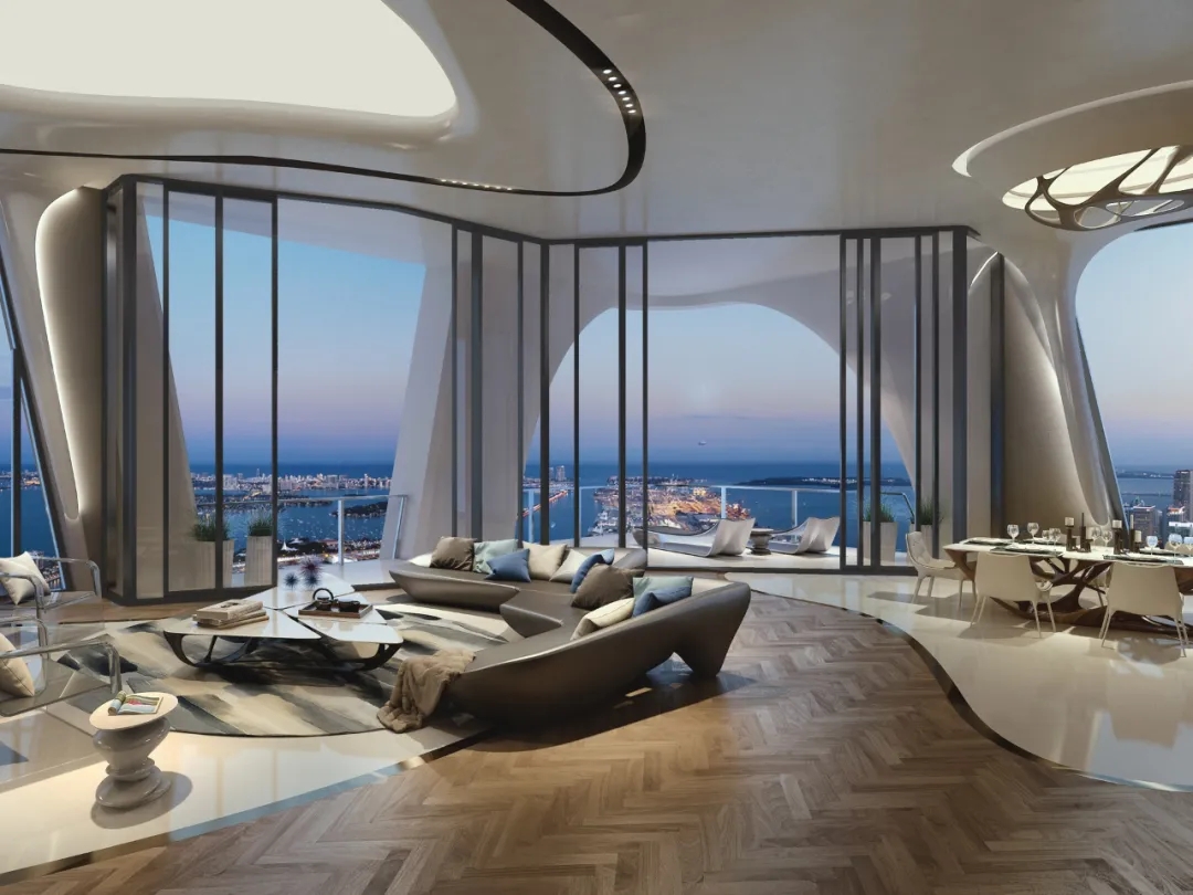 在全球的城市天際線中,我們總能看到風格鮮明的扎哈式曲線建筑。近期,貝克漢姆夫婦以2400萬美元(約合RMB1.7億)入手了美國邁阿密One Thousand Museum 1420㎡的頂層公寓,這棟豪宅的設計者就是建筑界被人高山仰止的“女魔頭”——Zaha Hadid(扎哈.哈迪德,已故)。大廈面朝邁阿密海灘,比斯坎灣美景、邁阿密天際線和“魔術之城”的燈光秀都盡收眼底。建筑外觀完美地呈現了扎哈標志性的曲線美,室內也充滿了現代科技感。