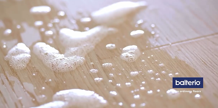 同時采用Uniclic+FitXpress鎖扣系統,將兩塊地板拼接,把水倒在鎖扣接縫處,挑戰24小時不間斷測試,24小時后發現水分零滲透,完全沒有滲入到地板基材中,真正做到滴水不漏,萬無一濕!這說明寶地雅防水地板可以突破傳統鋪設禁區,配合使用HydroShield水盾系統,可以完美適用于廚房、浴室的干區。
