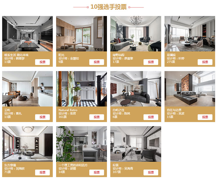 總決賽現場,10強選手將根據抽簽順序進行設計方案講解。評審團將從綜合選手的項目策劃和定位、空間布局的合理性和創新性、功能導向的得當以及用戶體驗效果、對幸福家理念的詮釋等方面進行打分,再結合線上投票數,評選出全國總冠軍。