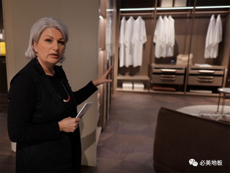 在展示地板樣品的時候,Luisa特別有提到,在產品制作方面,必美菲列德羅的「定制」也同樣非常出色??梢赃x擇不同的材料、顏色、工藝進創意組合,這些不同的配置方式,構建成模塊化的高端美學解決方案。
