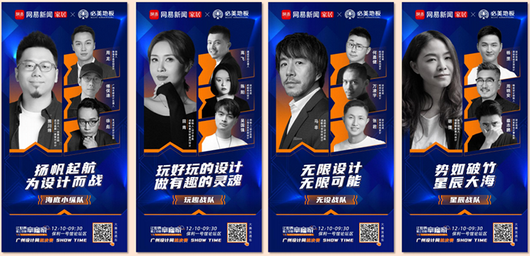 為進一步賦能中國青年設計的成長,網易、必美地板2021年幸福家室內設計大賽增加了“戰隊隊長”的新玩法,大賽召集4名資深設計師作為選手教練,在晉級賽環節中,與TOP 12設計師組成4個戰隊,在總決賽現場以戰隊形式展開最終PK,并評選出全場最強戰隊。