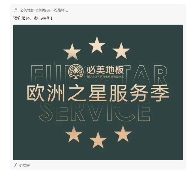 歐洲之星服務(wù)季正火熱進(jìn)行中,全國(guó)多家必美地板門(mén)店紛紛積極響應(yīng),除了在店面布置上,醒目展示了歐洲之星服務(wù)季標(biāo)識(shí)并大力宣傳該項(xiàng)服務(wù)體系;