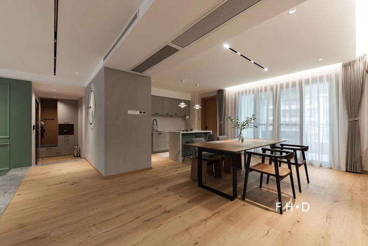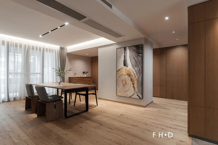 控制好結疤地板的占比,空間鋪裝效果會充滿生命力,也更有靈性。而一味地追求無自然色差、無天然結疤的地板,只會讓空間看起來單調乏味。
