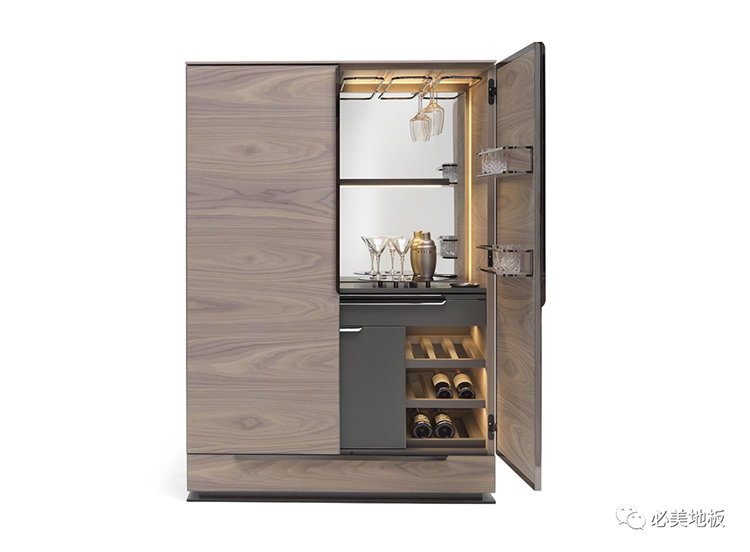 另一個(gè)重點(diǎn)展品——菲列德羅嵌入式衣帽間,上面是經(jīng)典的阿扎利亞拼花樣式,該拼花的應(yīng)用范圍非常廣,除了常規(guī)的地板應(yīng)用(經(jīng)典案例:法國女演員私宅),還能迎合目前十分流行的墻地一體化概念,木頭與大理石/金屬條/皮革等材料產(chǎn)生奇妙碰撞。