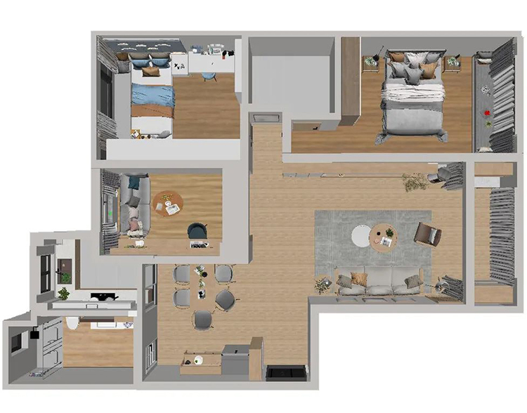 本案采用了現(xiàn)在很受歡迎的原木風(fēng)設(shè)計,多處運用了原木元素,為家居帶來自然氣息,營造溫馨生活氛圍。
