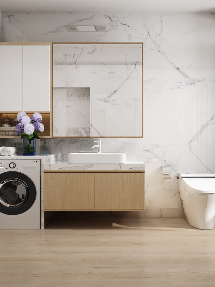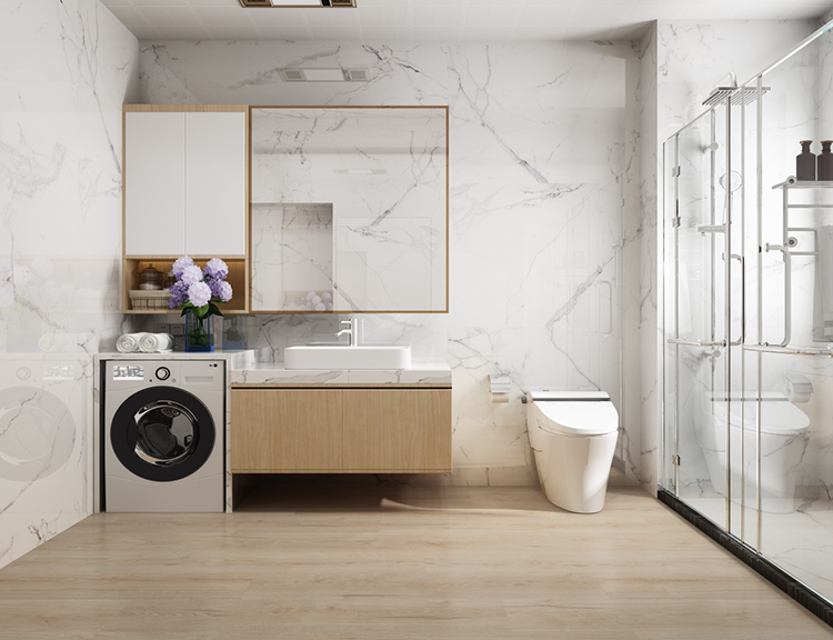 浴室干區(qū)鋪設(shè)了防水性能極佳的