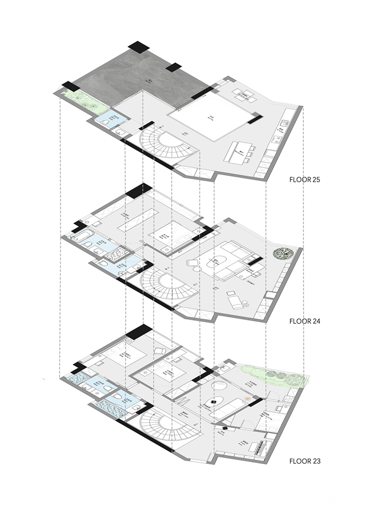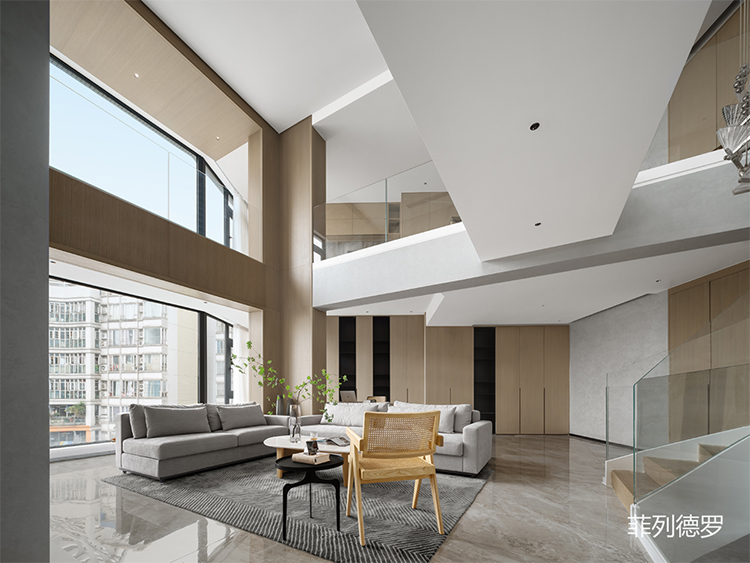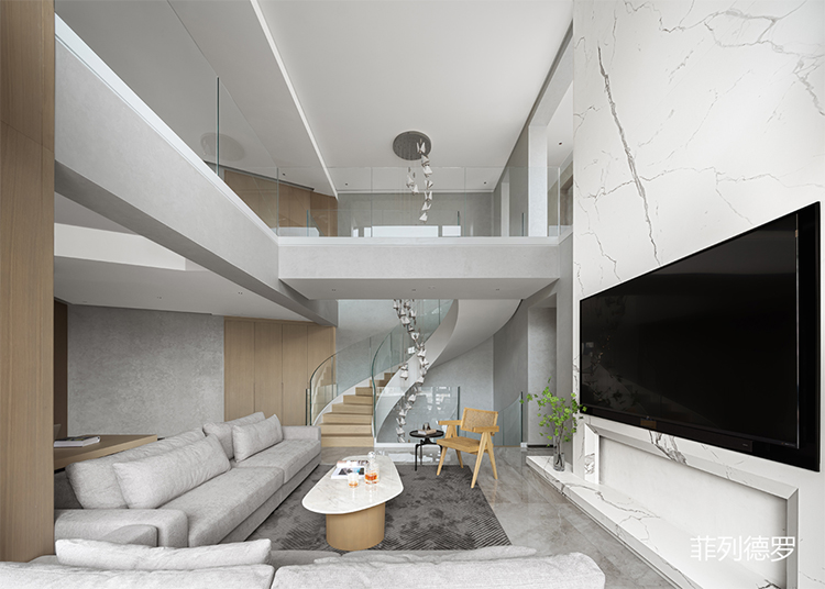 以旋轉(zhuǎn)樓梯貫穿全屋空間