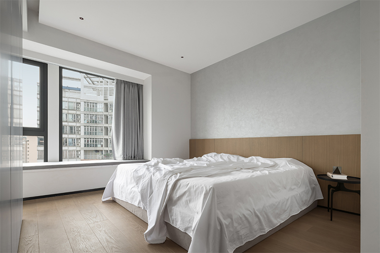 主臥采用原木色和灰色作為主色