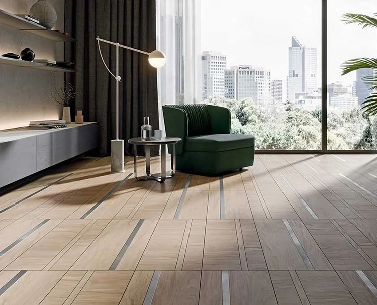 Eco、Ritma、Zago、Unda、Alveo、Regolo這六款地板都有其獨特的設計魅力,這種源于自然界與設計相結合的創作來源,以木材細膩的紋理和獨有的特征作為模塊初始圖案,通過多種可供選擇的木飾面和金屬或大理石結合,變幻的材質與色彩之中,創造出多種別具一格的布局選擇。