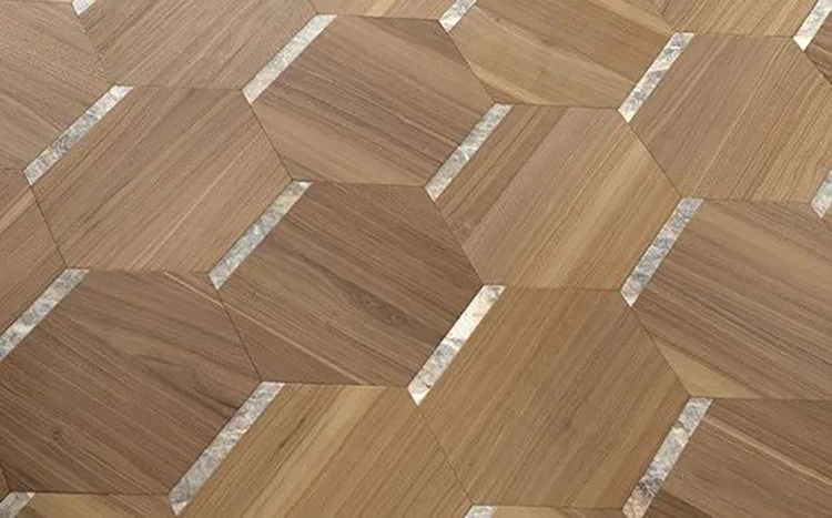 Alveo 模塊頌揚自然結構的美感,六邊形元素的重復——可以與各種不同材料中的鑲嵌物交替使用——以復雜的構成共同創造出由高貴木材制成的地板。