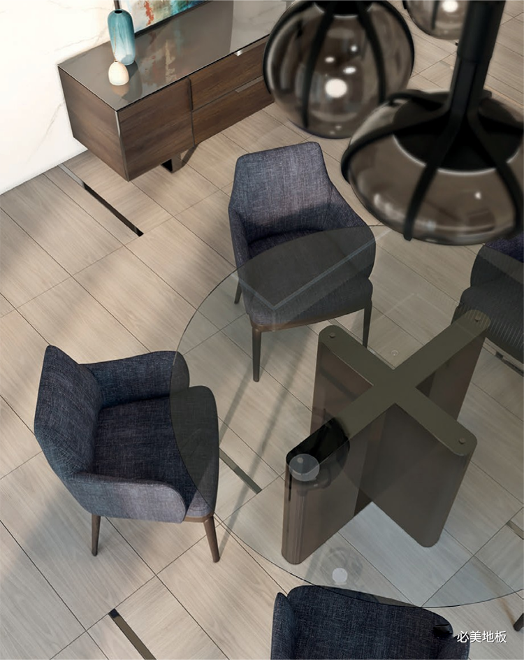 在未來使用愛麗蒙塔系列地板的空間當中,我們存在有比較自然的物質(木材),與比較堅硬的金屬之間的一種碰撞,像木質溫潤與大理石這種自然硬朗的材質之間的碰撞等更多空間的使用場景,這也是我認為愛麗蒙塔這款這款地板,能夠帶給這個市場一個非常獨特的一個亮點。
