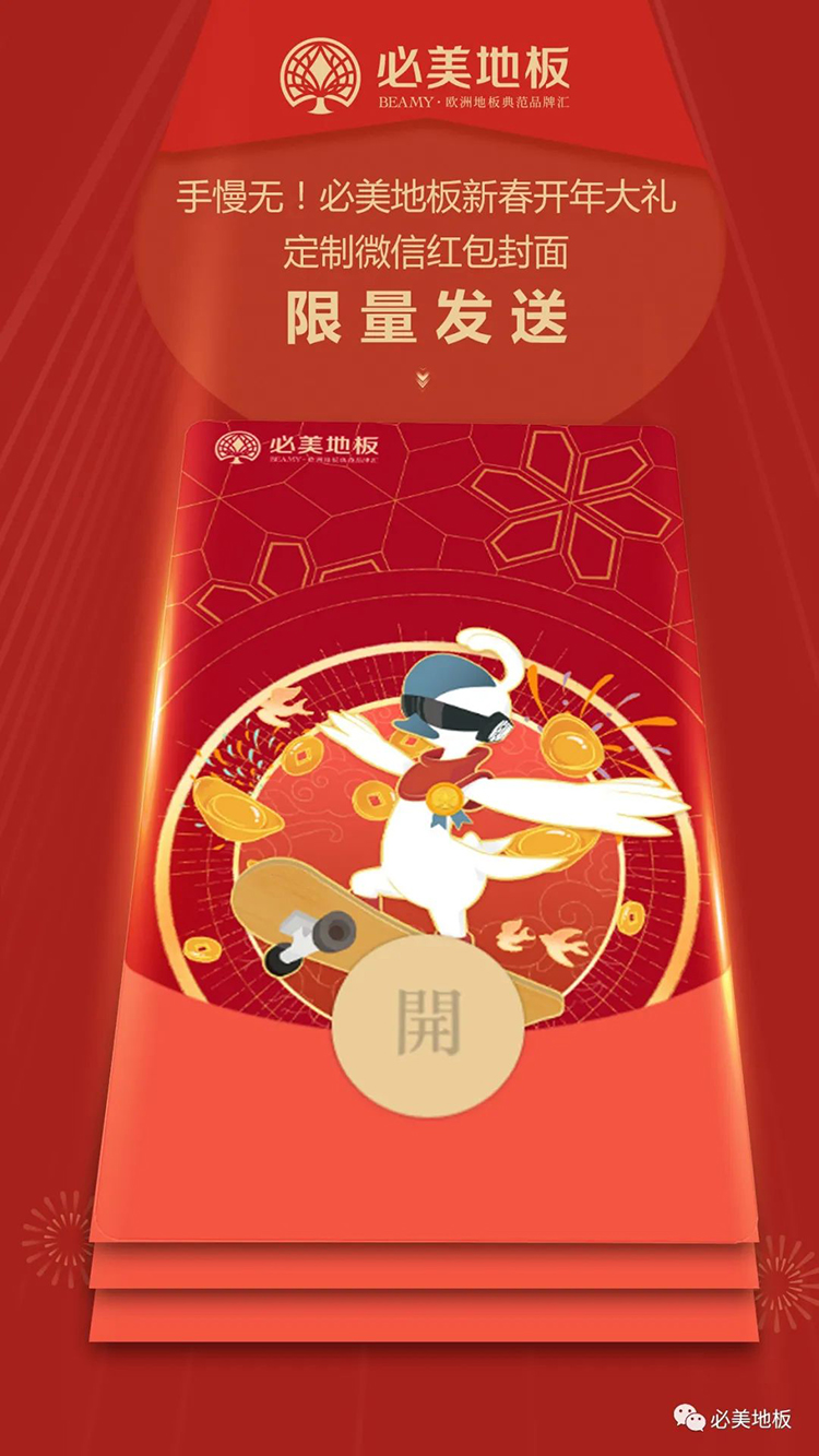 充滿(mǎn)年味兒的微信紅包封面玩法,必美環(huán)保騎士自然不會(huì)缺席,以下為2022年必美地板定制紅包封面: