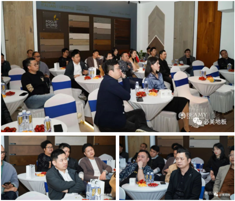 必美地板贛州營銷中心總經理陳強先生、必美國際集團品牌運營中心總監譚天謙先生、必美國際集團華南大區總經理朱琪先生、必美國際集團華南大區經理劉杰賢先生、必美國際集團品牌運營中心推廣部副經理盧健文女士蒞臨活動現場,特邀意大利Studio Marco Piva建筑設計事務所中國區-斯邁普設計事務所CEO陳思達先生作為演講嘉賓,與贛州地區的精英設計師們共襄這場設計盛宴。