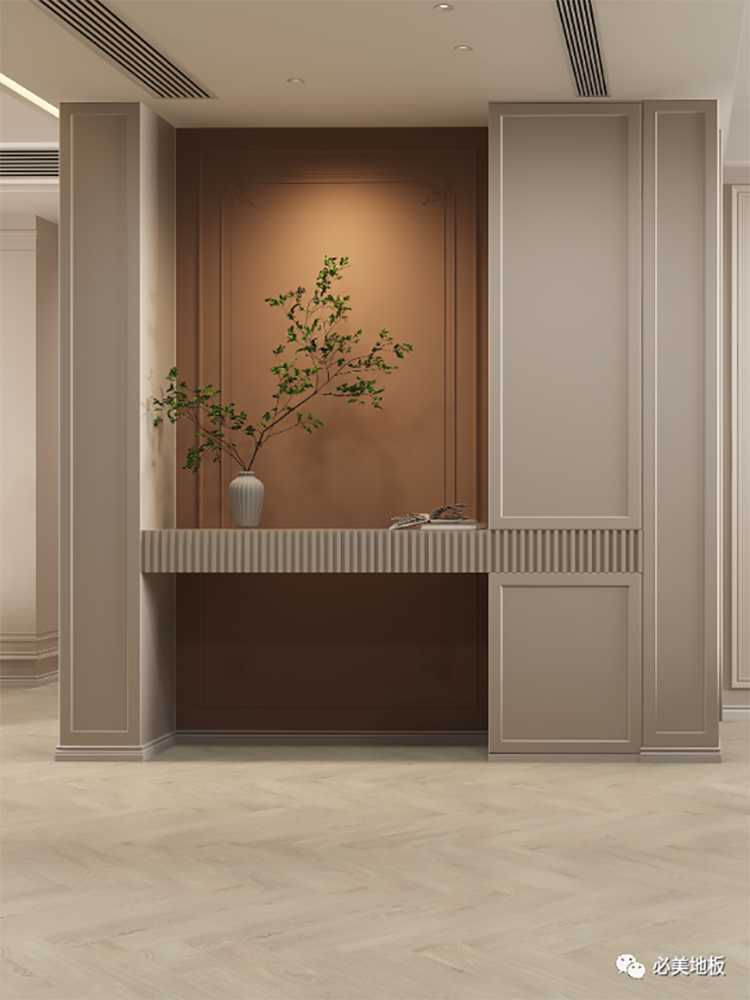 天然橡木人字拼搭配同色系墻漆