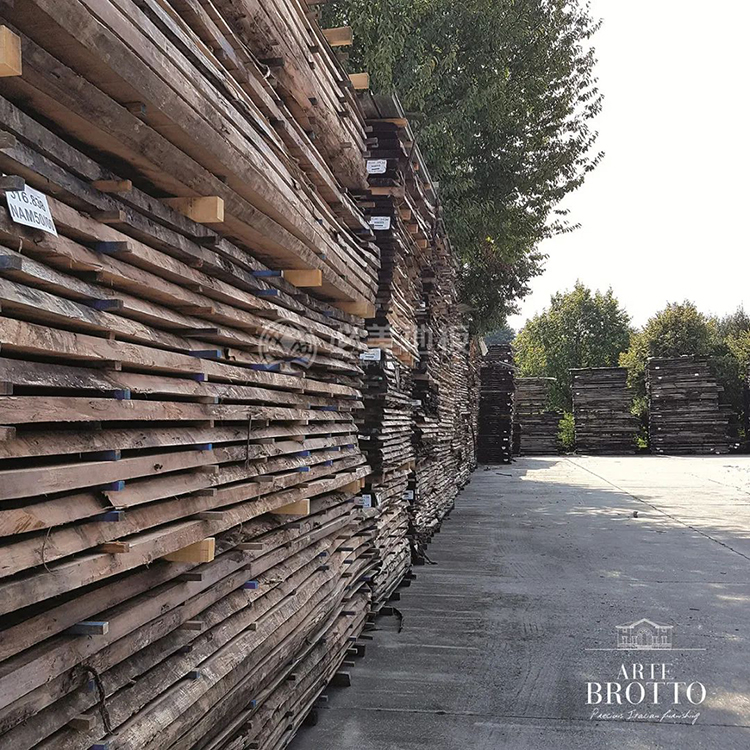 巨大的歐洲橡木和美國胡桃木被保存在倉庫中,這是一個價值連城的木材儲備庫。它們整齊地疊放在一起,散發出高大寬闊樹木樹脂特有的香脂香氣。阿特布魯托是世界上唯一一家能夠保存大量珍貴的實木板材并將其制作成獨特家具的公司。