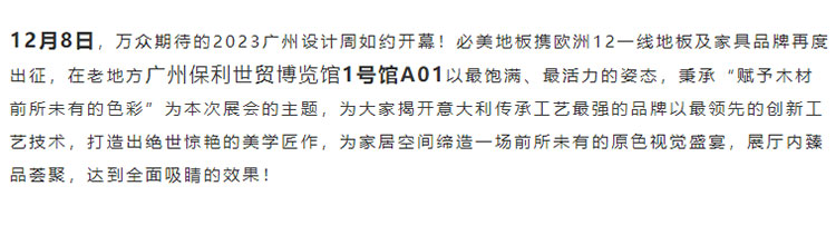 開展首日 | 2023廣州設(shè)計(jì)周,必美地板締造了一場前所未有的原色視覺盛宴!