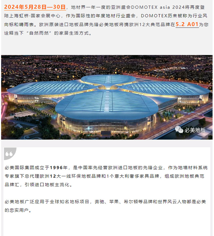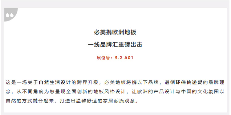 必美地板強(qiáng)勢出擊!上海國家會(huì)展中心5.2館A01約定您!
