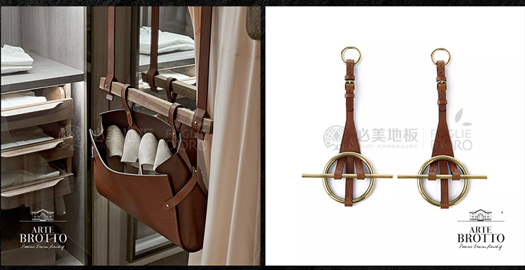 必美菲列德羅的獨特,更在于將貴族馬術(shù)文化凝練為設(shè)計語言。旗下La Selleria系列衣架與收納掛袋,以馬術(shù)韁繩的黃棕配色為靈感,鍍金金屬環(huán)與手工鞣制皮料的碰撞,復(fù)刻了馬術(shù)裝備的復(fù)古優(yōu)雅;而阿特布魯托頂級家具系列,則以賽馬場流暢的弧線為設(shè)計骨架,將騎士的矯健身姿化為家具的靈動輪廓。