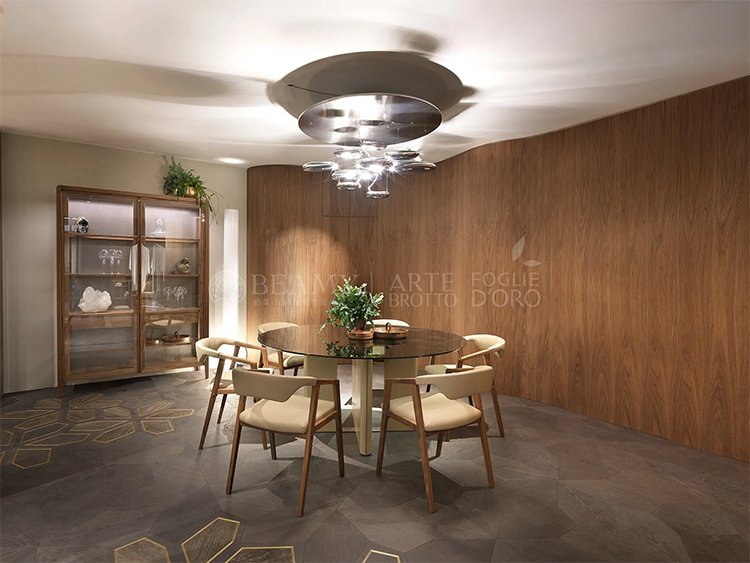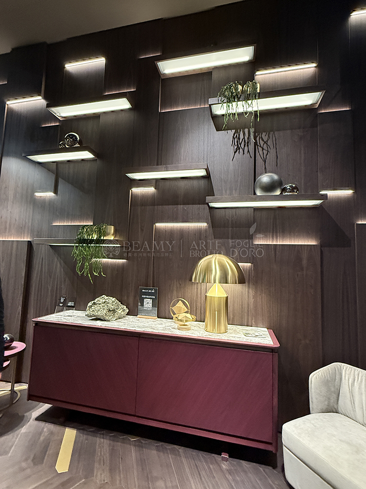 通過(guò)黃銅顏色和木材顏色相結(jié)合,打造出一種極具現(xiàn)代感的新潮,給人眼前一亮的感覺(jué)。