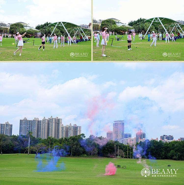 一眾參賽設計師到達指定位置,便陸續熱身進入正式比賽;現場氣氛熱烈,球員們身著優雅球服,揮桿間盡顯從容與自信,一桿一球在空中劃出優美弧線,精準落入洞中,引發觀眾陣陣掌聲。