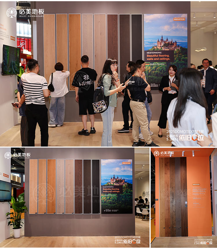 必美地板帶來了多款重磅新品,成為全場焦點。新品系列融合了最新的設計理念與前沿技術,無論是色彩搭配還是紋理質感,都展現出前所未有的創新與突破。