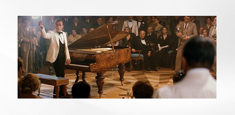電影《海上鋼琴師》中有一個場景,鋼琴師把一根完好的香煙放在鋼琴上,以一人之力用極快的手速演奏了一首高難度的四手聯彈,從鋼琴師指下魚貫而出的音樂震撼了全場。