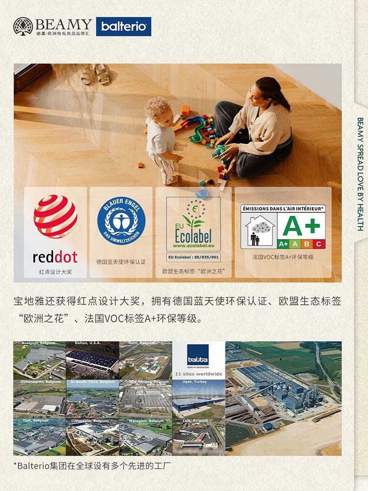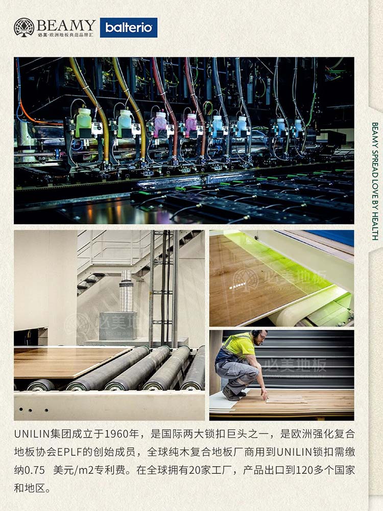 作為比利時寶地雅在中國地區的重要戰略伙伴,必美集團多年來始終致力于將全球頂尖的歐洲環保地板引入中國市場。Unilin集團作為國際兩大鎖扣巨頭之一,其憑借創新專利的鎖扣技術、卓越的設計理念和嚴苛的環保標準,產品出口覆蓋高達120多個國家和地區。