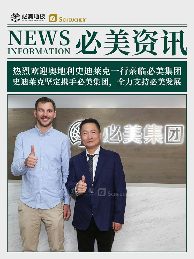 在必美國(guó)際集團(tuán)總裁孫海源先生、必美國(guó)際集團(tuán)品牌運(yùn)營(yíng)總監(jiān)譚天謙先生的陪同下,雙方就未來(lái)中國(guó)地板市場(chǎng)的發(fā)展趨勢(shì)、消費(fèi)升級(jí)帶來(lái)的新需求以及如何進(jìn)一步深化合作進(jìn)行了卓有成效的探討。