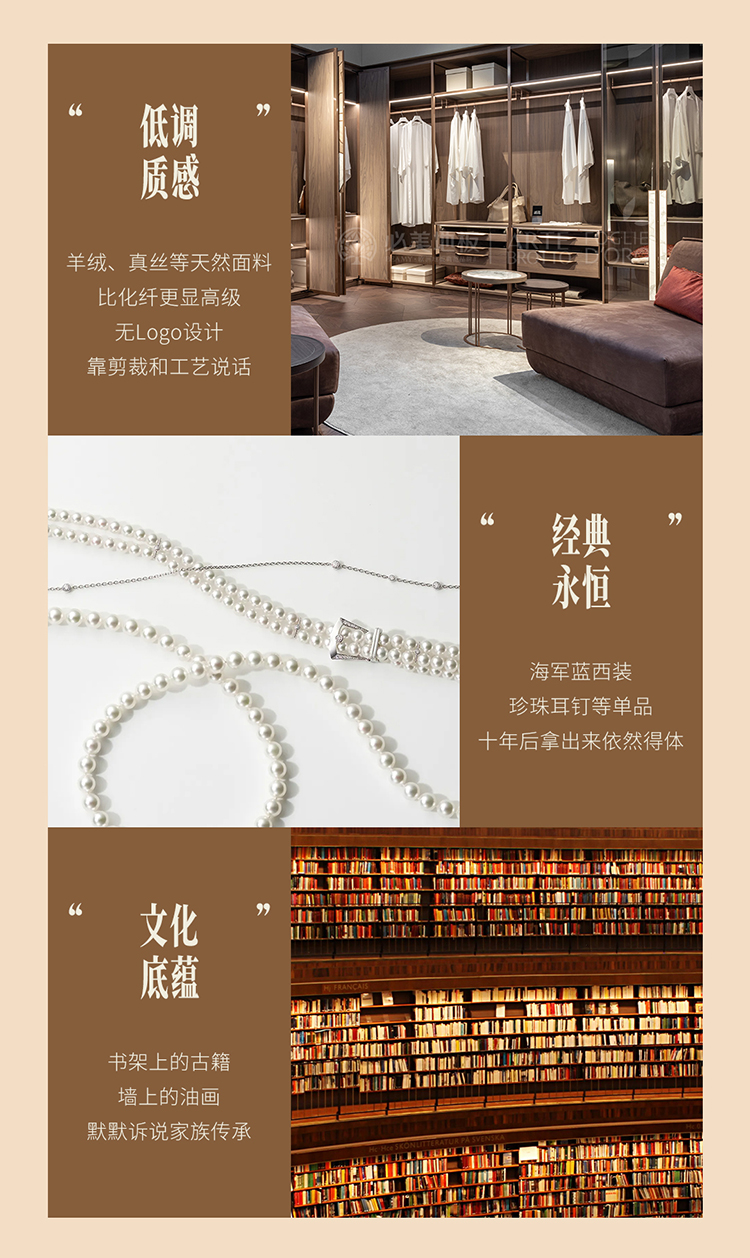 • 低調質感:羊絨、真絲等天然面料,比化纖更顯高級;無Logo設計,靠剪裁和工藝說話